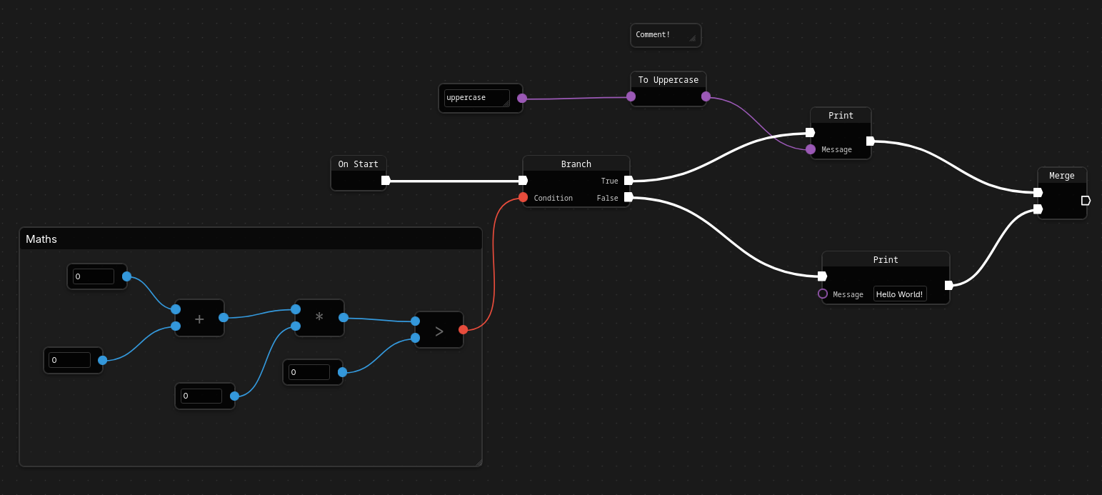 - Execution flow is much easier to follow in node-based, simply follow the white wire. In block-based it can be all of the place with different functions and long blocks for conditionals.