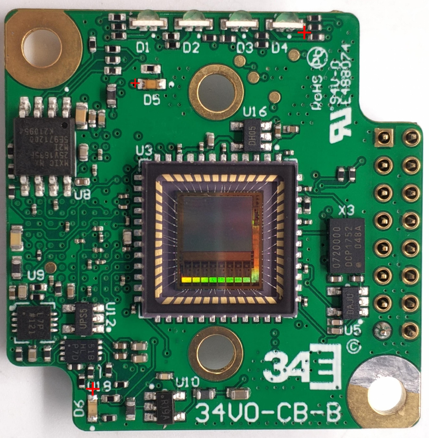 Eight-layer PCB integrating FTDI USB chip, Artix-7 FPGA, and Onsemi image sensor: